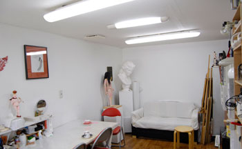 (アトリエには生徒作品の他、現代美術家の作品が並びます。)